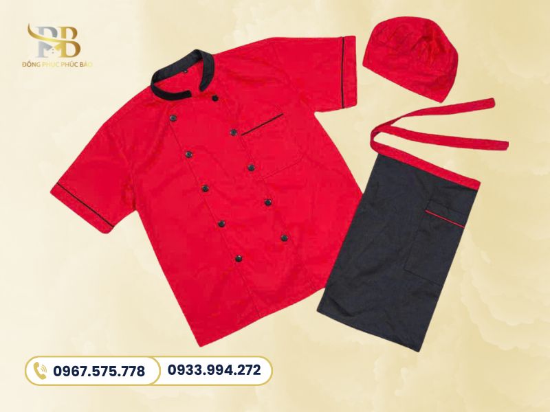 c. Đồng phục phục vụ (apron, nón): Thường đi kèm với đồng phục quán ăn, giúp nhân viên dễ dàng di chuyển và tránh bám bẩn.
