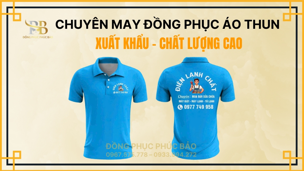 Xưởng may đồng phục áo thun Phúc Bảo tự hào mang đến các sản phẩm đồng phục áo thun theo yêu cầu với thiết kế độc đáo. Liên hệ ngay qua 0967.575.778 hoặc 0933.99 42.72 để được tư vấn chi tiết!
