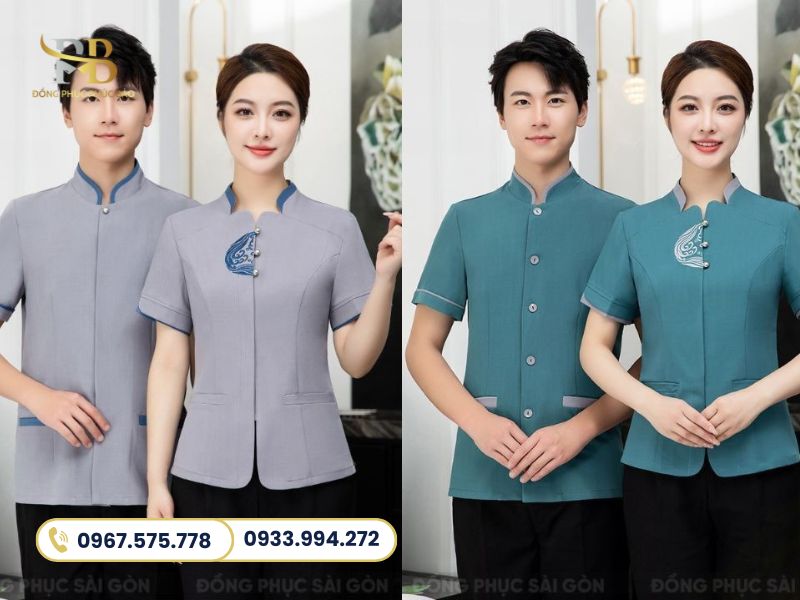 • Đồng phục kỹ thuật viên: Cần ưu tiên sự thoải mái, với áo tunic hoặc áo thun co giãn, dễ di chuyển trong các công việc massage, chăm sóc da.